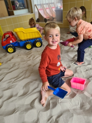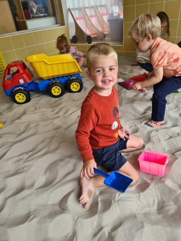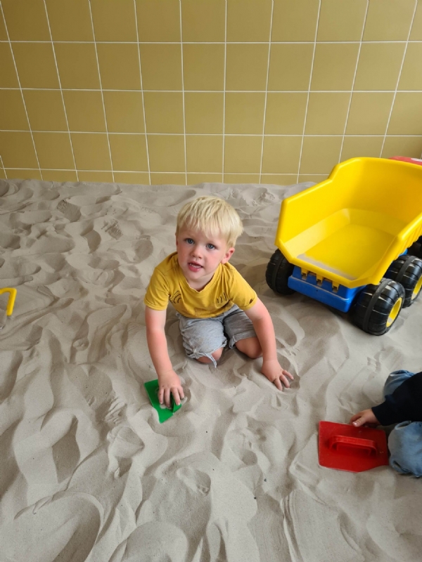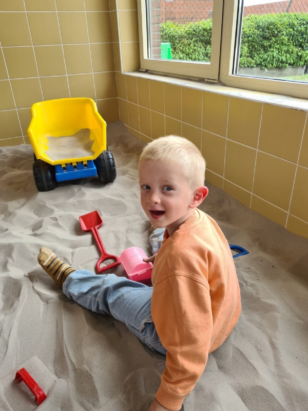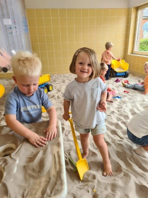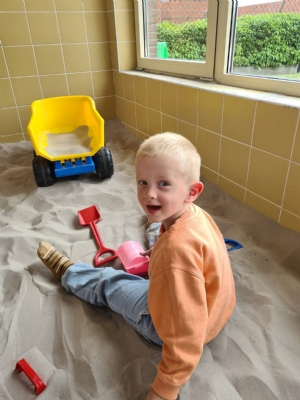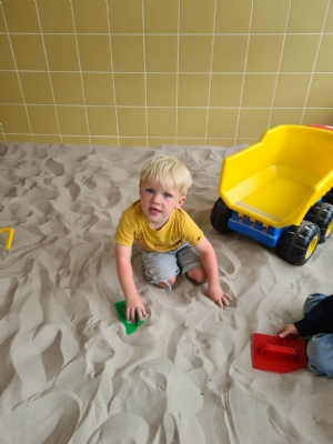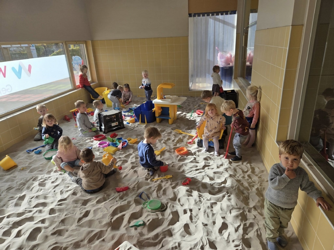 De peuters en eerste kleuters hebben zich uitgeleefd in de verwarmde binnen zandbak.