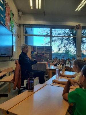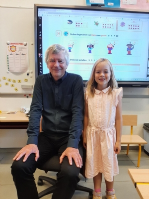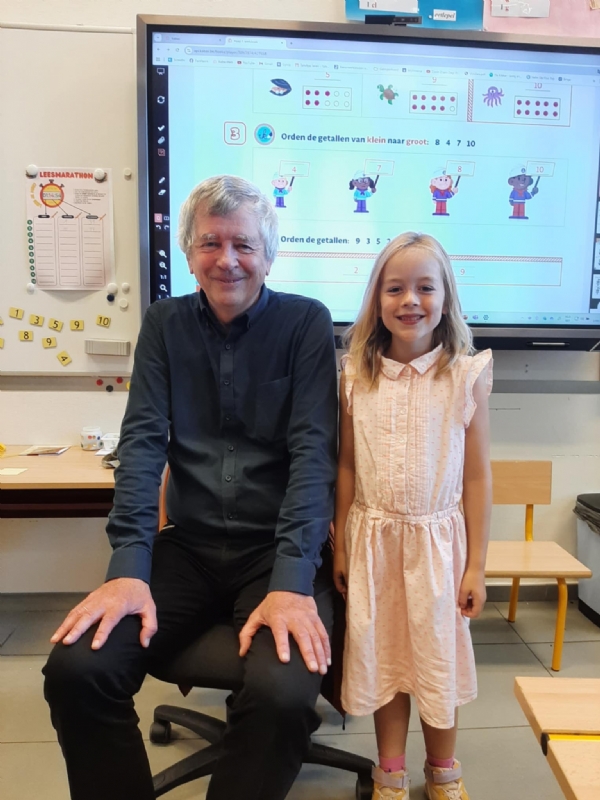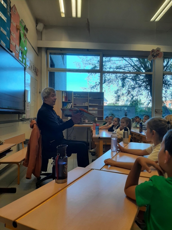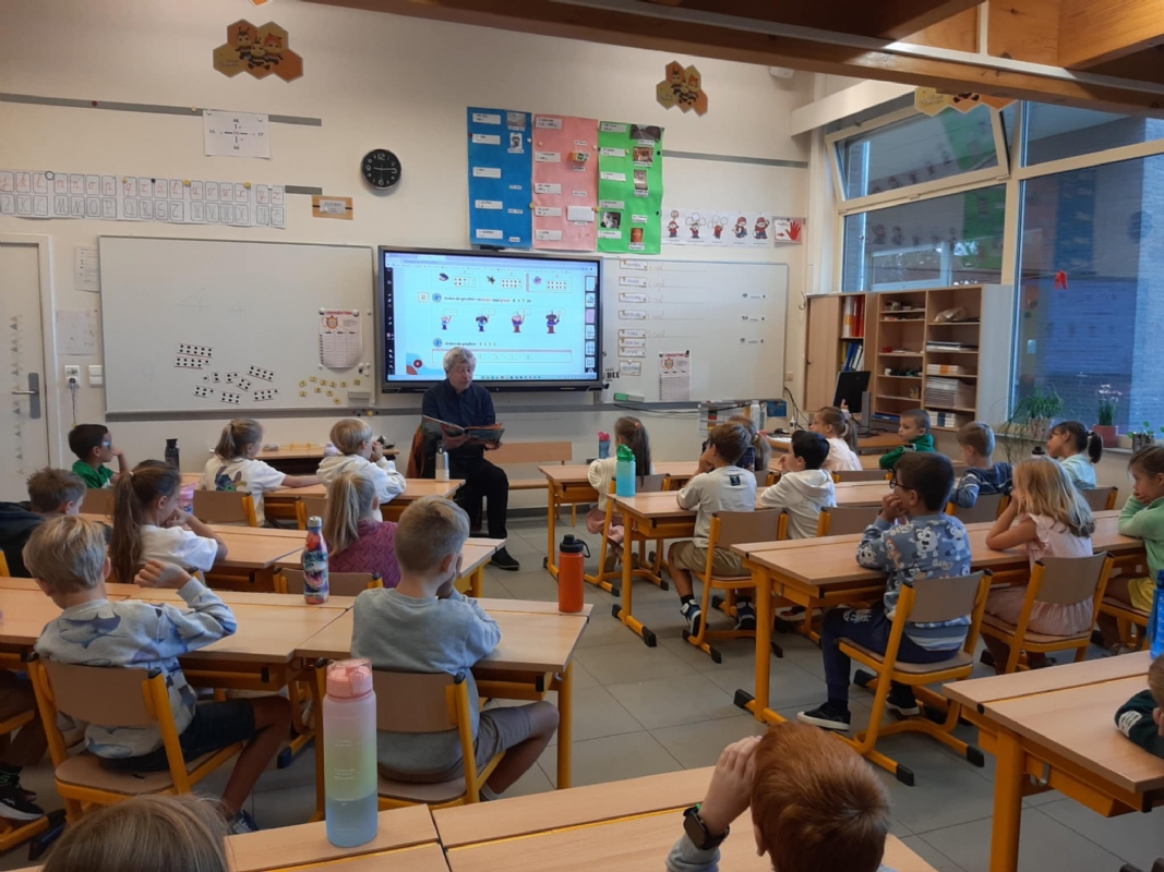 Op dinsdag kwam de opa van Julia ons helpen om de leesmarathon aan te vullen en letters te verzamelen voor het lege boek van Mevrouw Letter. Hij nam ons mee doorheen het verhaal van het bezorgde bijtje. Met een grappige opmerking of leuk weetje tussendoor … hingen de kinderen aan zijn lippen. Dank je wel Dirk voor het gezellige voorleesmoment!