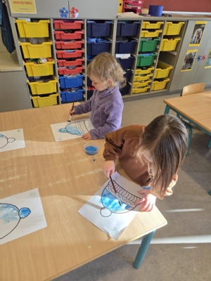 Deze week doken we helemaal in het winterthema. We kleurden en schilderden een mooie muts en een warme jas.