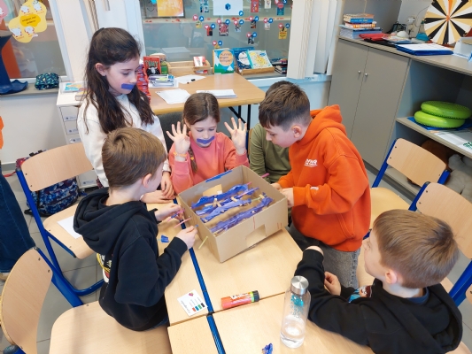 Spelen met de zelfgemaakte spelletjes van en bij L4