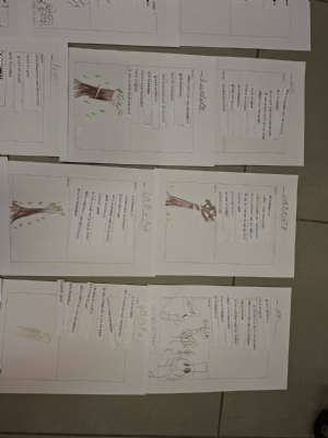 Deze week doken de leerlingen van de Boomhutklas in de wondere wereld van poëzie. In het kader van gedichten over de vier seizoenen gingen ze op ontdekkingstocht langs verschillende versvormen, helemaal passend binnen ons wereldoriëntatiethema ‘Pluk de dag’. De leerlingen verkenden niet alleen mooie, sfeervolle gedichten, maar gingen ook zelf creatief aan de slag. Zo ontstonden er stapelgedichten, letterverzen, elfjes en knip-en-plakgedichten.