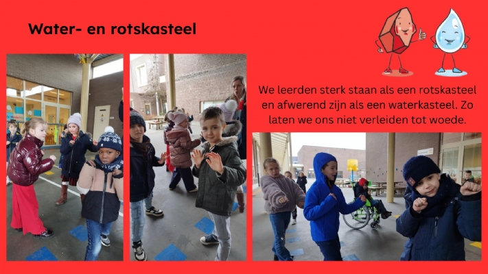 Tijdens onze Vriendschapsweek stond alles in het teken van het thema ‘Gevoelens in kleur’. De week ging van start met een gezellig bioscoopmoment, waar de leerlingen genoten van de film Binnenstebuiten. De emoties uit de film vormden de rode draad doorheen de activiteiten. Elke dag ontdekten de leerlingen een ander gevoel, telkens gekoppeld aan een specifieke kleur. Zo leerden ze dat alle gevoelens er mogen zijn en dat het belangrijk is om ze te herkennen en te uiten. Samen gingen we ook op zoek naar manieren om met die gevoelens om te gaan. Op vrijdag sloten we deze warme week feestelijk af met een carnavalsfuif en een sfeervol pannenkoekfeestje in de klas.