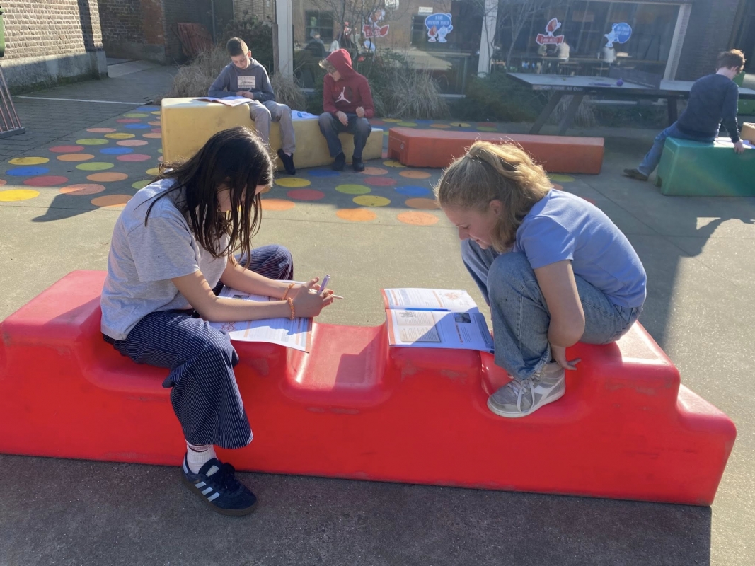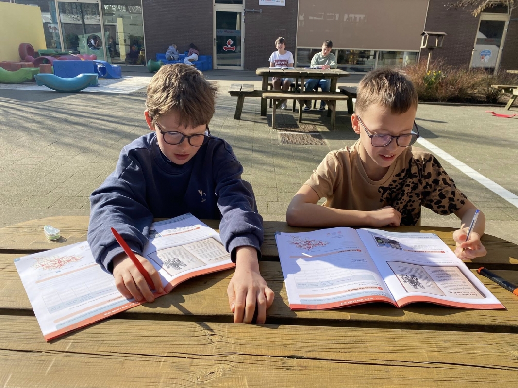 Een frisse neus en de zon op onze snoet! Zalig leren in de eerste zon.