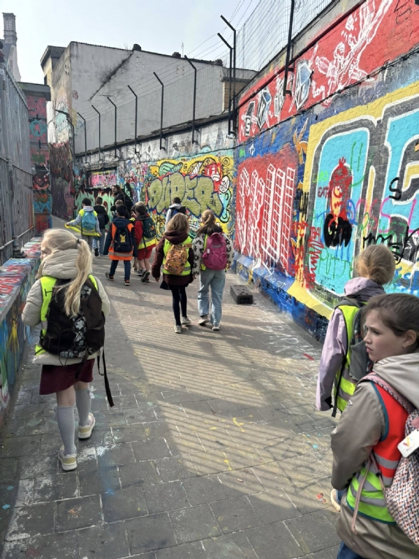 We startten bij het graffitistraatje waar we onmiddellijk de woordenschat van Nederlands ‘een tag’ in de realiteit konden zien.