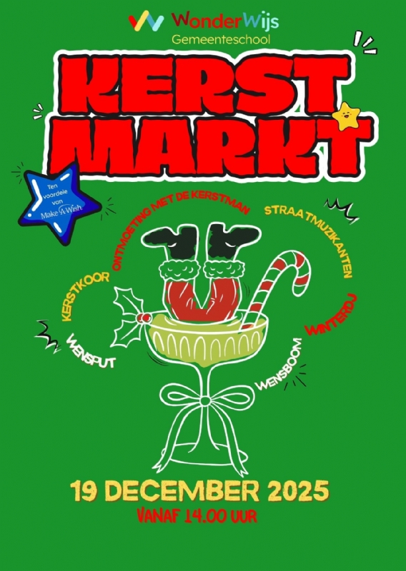 Op vrijdag 19 december 2025 vanaf 14.00 uur toveren we onze school om tot een sfeervol winterdorp vol lichtjes, muziek en gezelligheid.